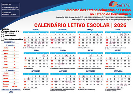 Calendário com as datas mais importantes do ano escolar em Pernambuco.
